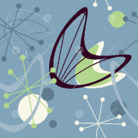 The atomic age was influenced by advances in atomic energy and research and fears about atomic weapons. It was also influenced by modern art by artists such as Jackson Pollack, Alexander Calder, and Pablo Picasso. Pollack’s drip paintings and Calder’s curvy forms were turned into abstract atomic patterns. Atomic particles and modern art influenced geometric designs that were found in architecture, curtains, vinyl top kitchen tables, counter tops, dishware, glassware and wallpaper.
