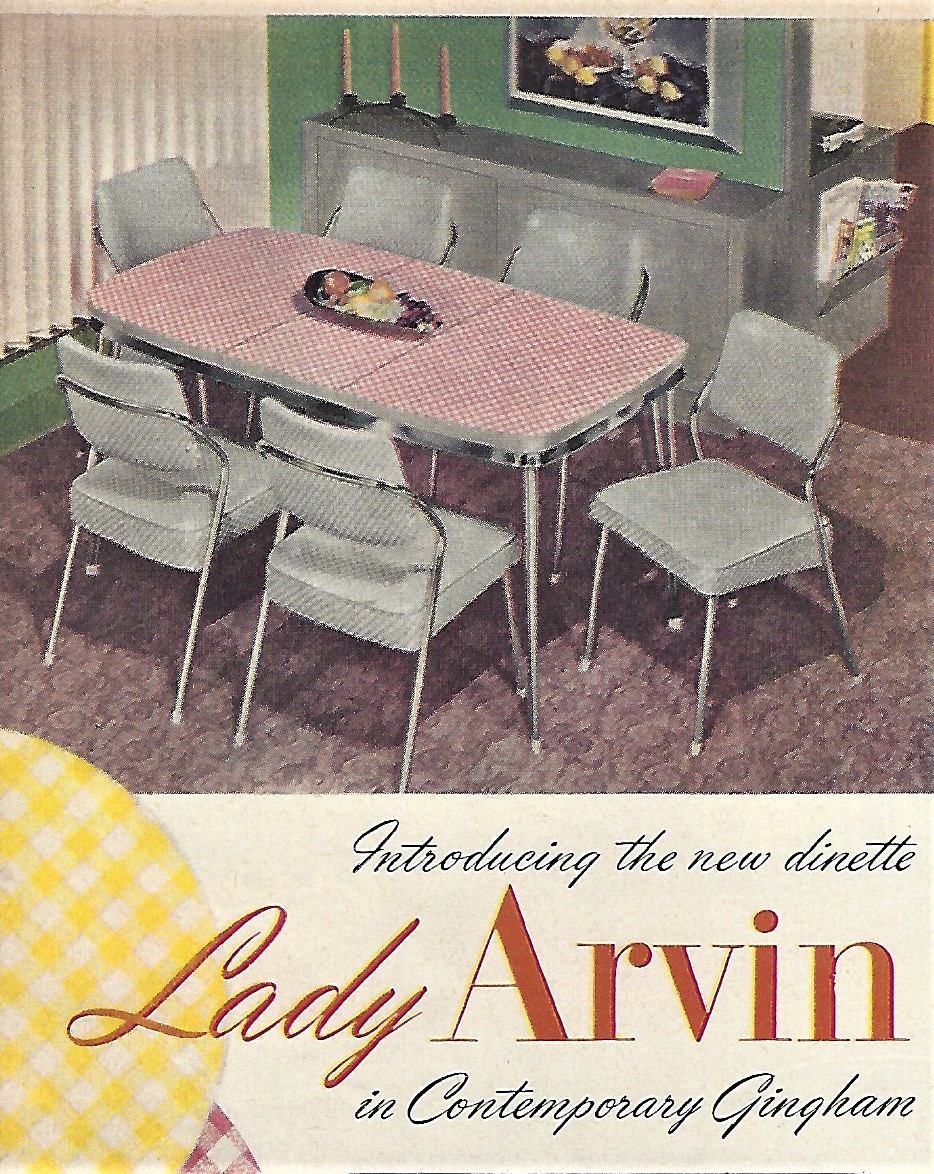 The ubiquitous vinyl kitchen table. This from an Arvin ad in Better Homes March, 1952