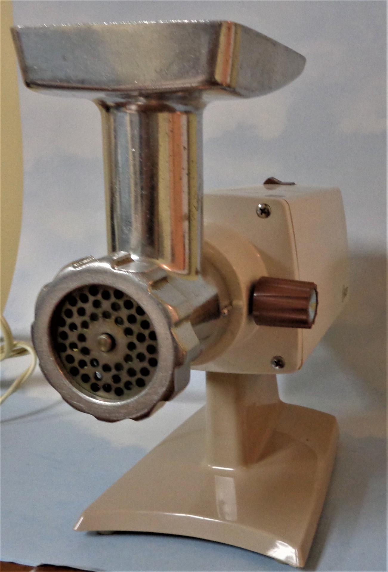 The electric knife sharpener was one of the new kitchen gadgets of the Space Age. This one by Handy Hannah of Waltham, MA. Based on the color, knife sharpeing was not just for men anymore.
