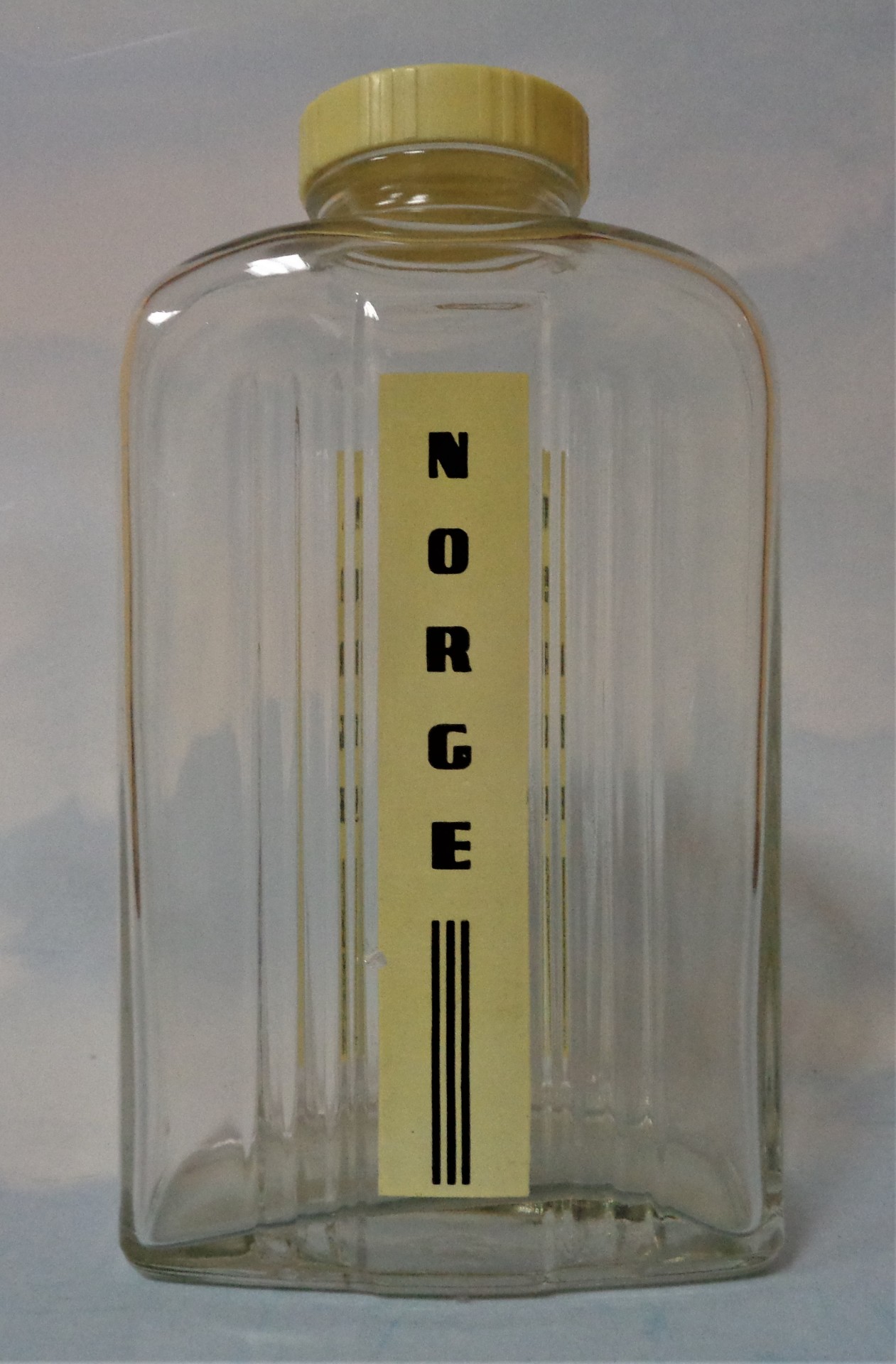 Norge refrigerator jar. Norge was a major refrigerator brand in the 1950s.
